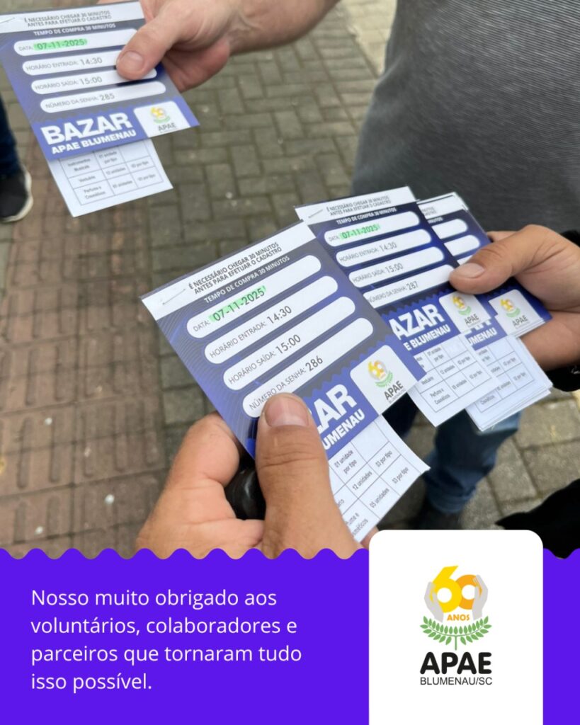 #APAEBlumenau #BazarSolidário #Gratidão #Inclusão #Solidariedade #TransformandoVidas #TEA #DeficiênciaIntelectual #Autonomia #Blumenau